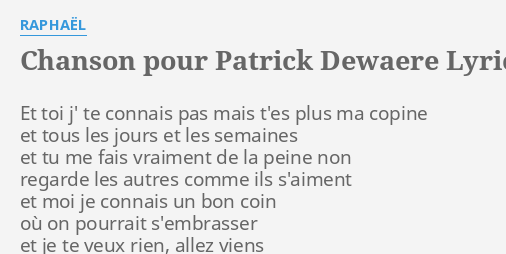 Chanson Pour Patrick Dewaere Lyrics By Raphael Et Toi J Te